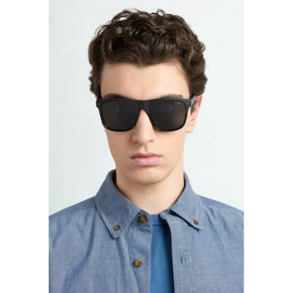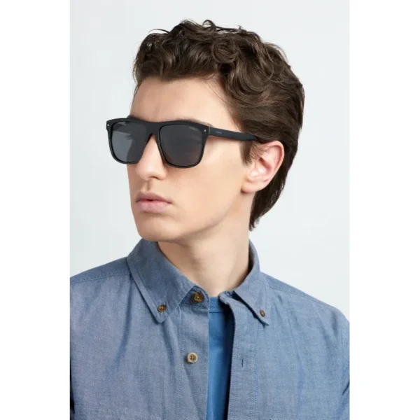 The Polaroid PLD 6041/S 807 M9 sunglasses blend clean design with reliable eye protection. These feature a solid black rectangle frame crafted from durable plastic/polycarbonate, paired with grey polarized lenses that reduce glare and deliver full UV400 protection.